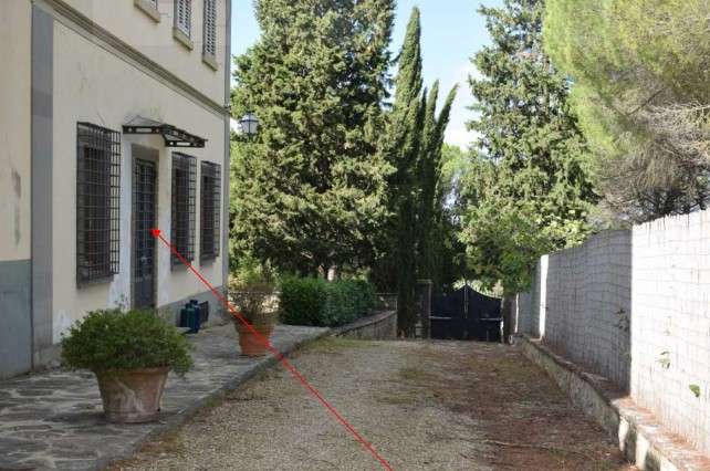 La porzione principale, che rappresenta l’anima storica della villa, si raggiunge dal fronte nobile dell’edificio. Al piano terra accoglie un maestoso salone di rappresentanza di circa 100 mq, una corte interna chiusa da una struttura in ferro e vetro, una cucina, vari ambienti di servizio e una zona notte al piano superiore composta da camere, ulteriori servizi e accessori. La torre ospita un vano aggiuntivo con accesso alla terrazza panoramica, circondata da coronamento merlato, mentre al piano interrato si trovano le cantine, accessibili separatamente. Annessi esterni come ripostigli, lavanderia, centrale termica e un grande giardino con essenze mature completano questa porzione, che copre da sola oltre 500 mq di superficie utile.