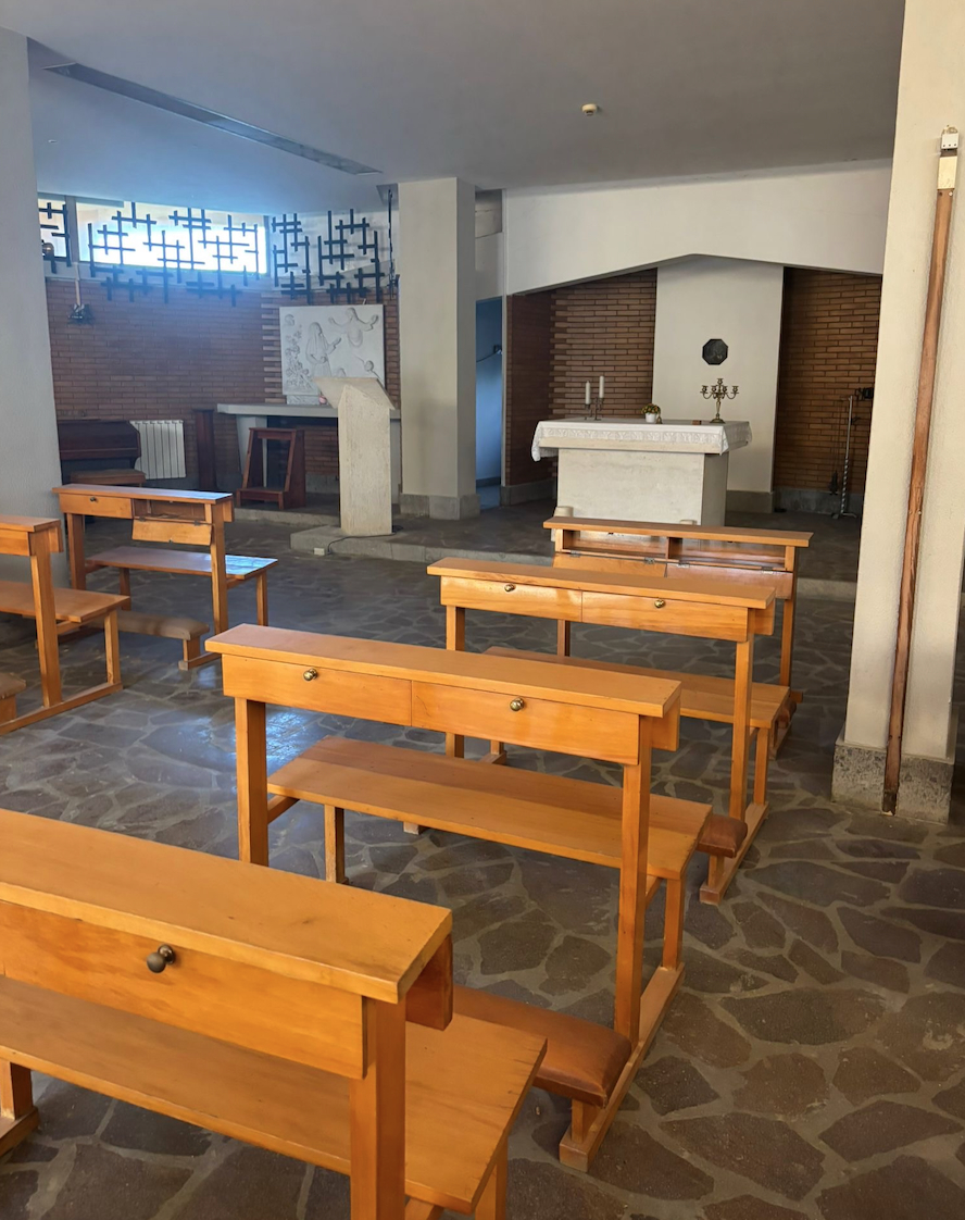 - Pian terreno: reception, ristorante, cucina, bagno e chiesa;